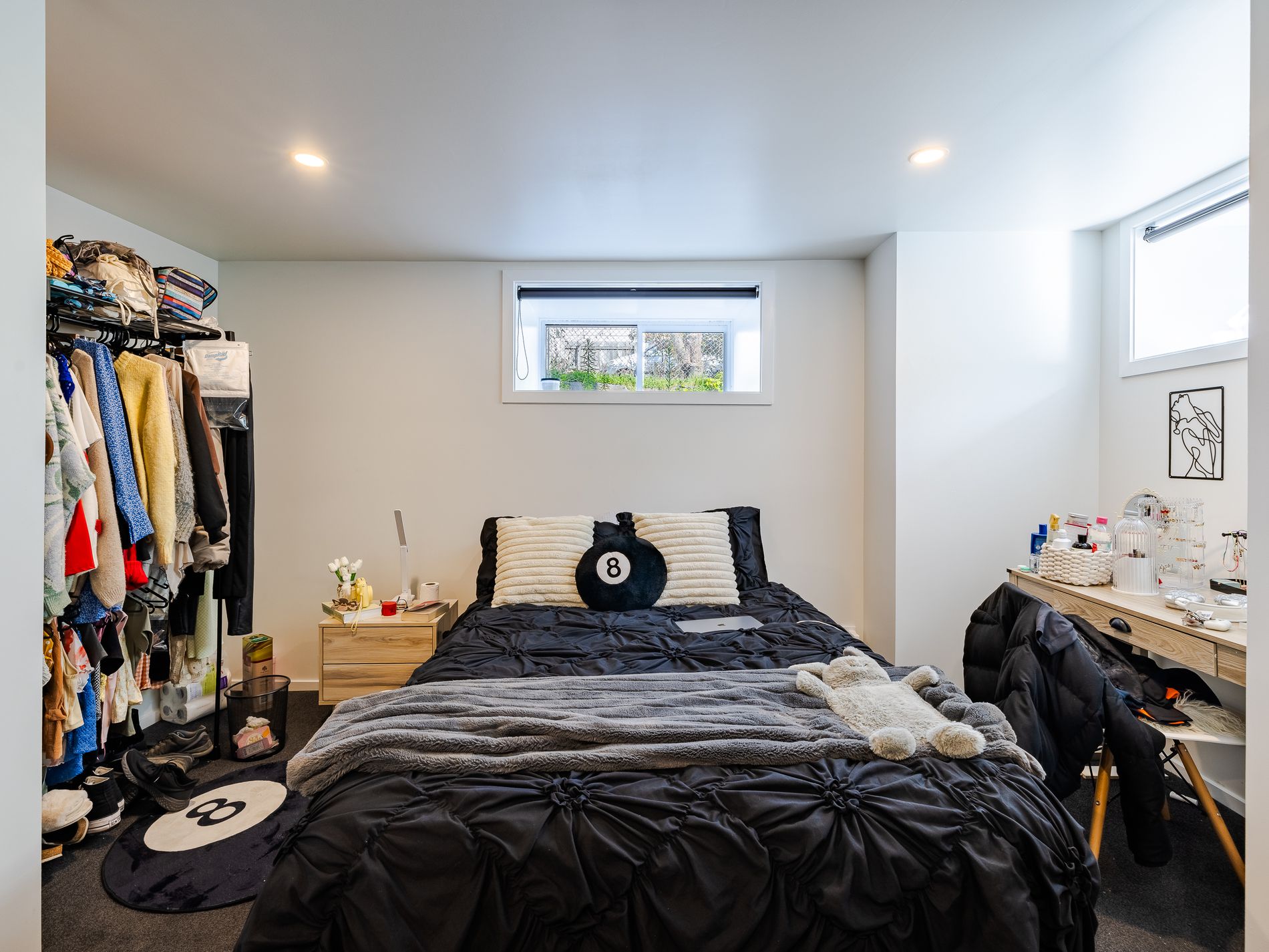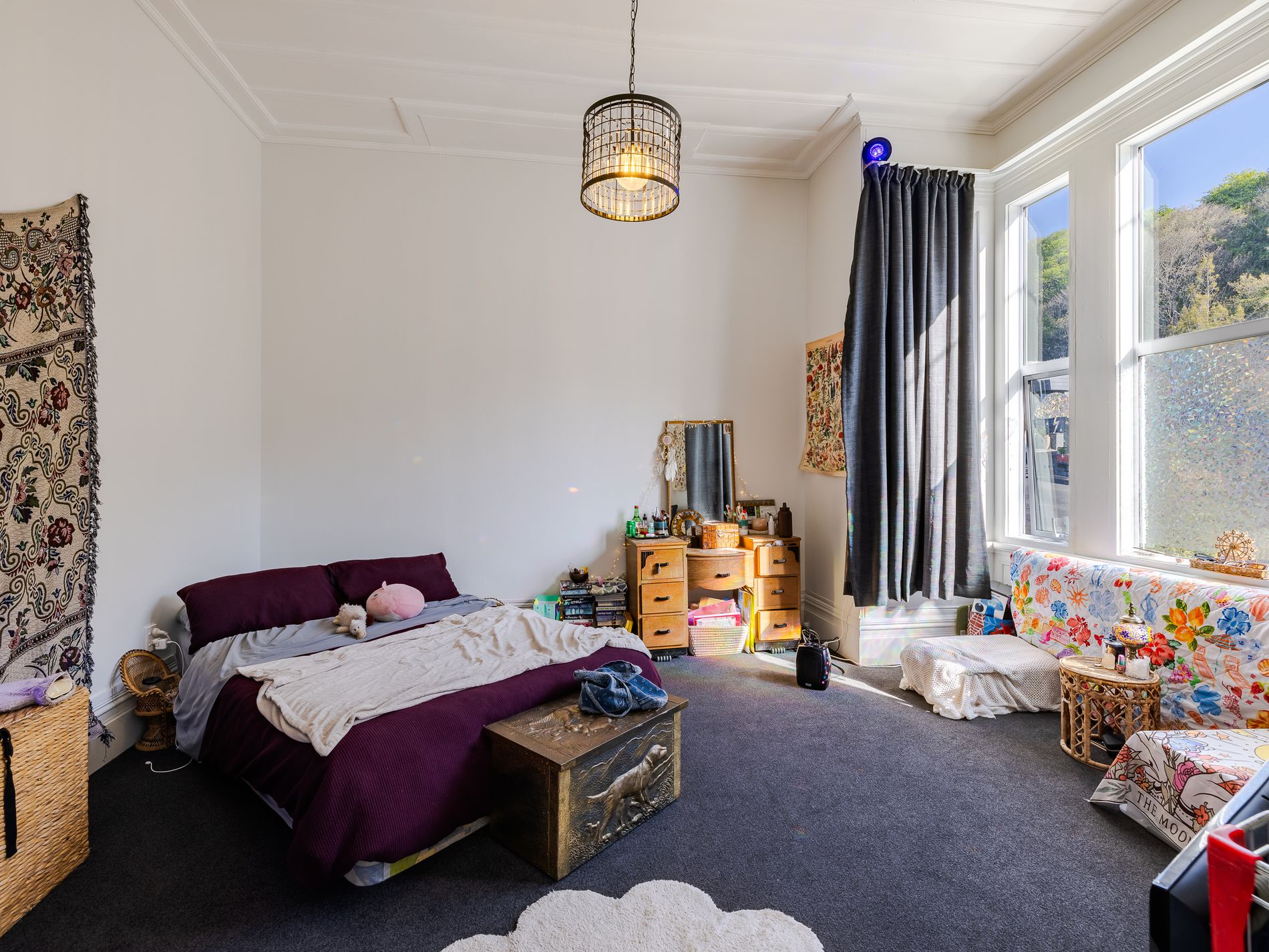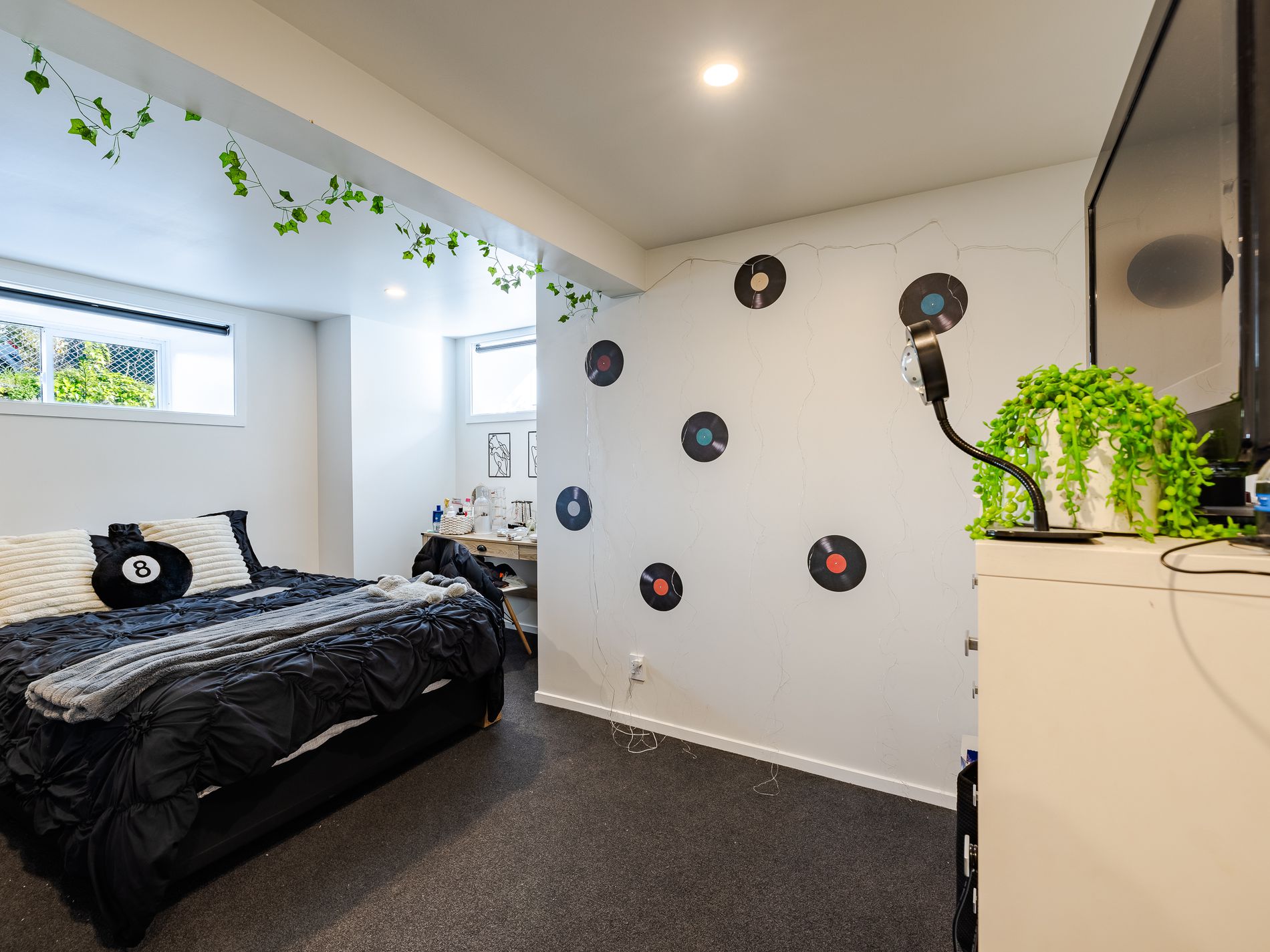 Spread over two stories and located on the city fringes, it contains 9 good-sized bedrooms, a sunny, spacious open plan kitchen/ living area, 3 bathrooms, a covered balcony and a patio out back, along with 3 car parks. The section is very low maintenance.
