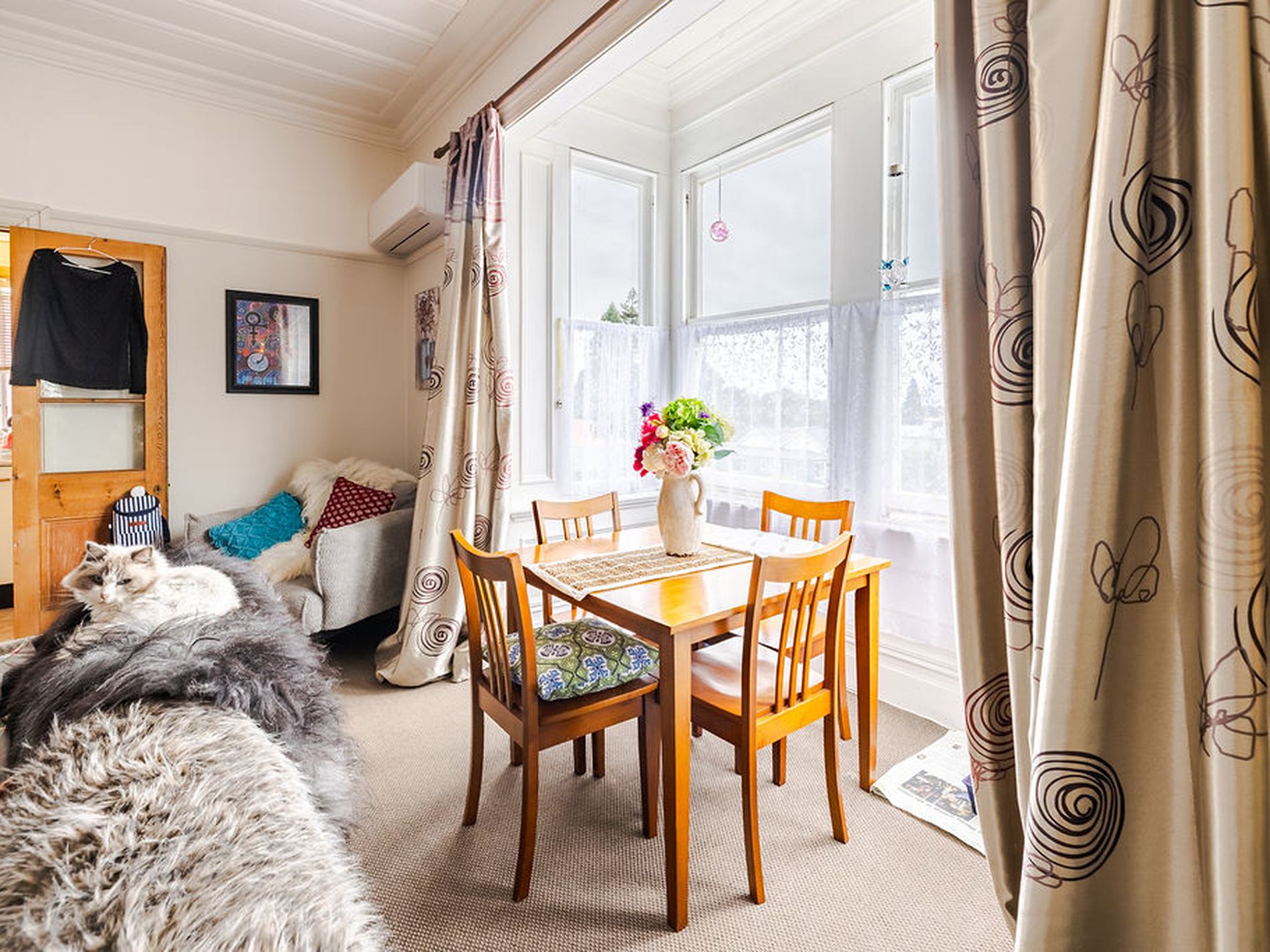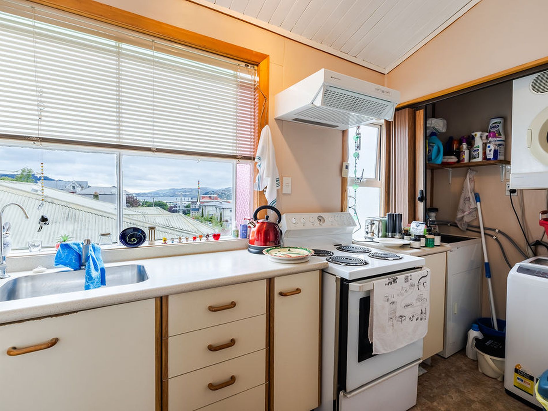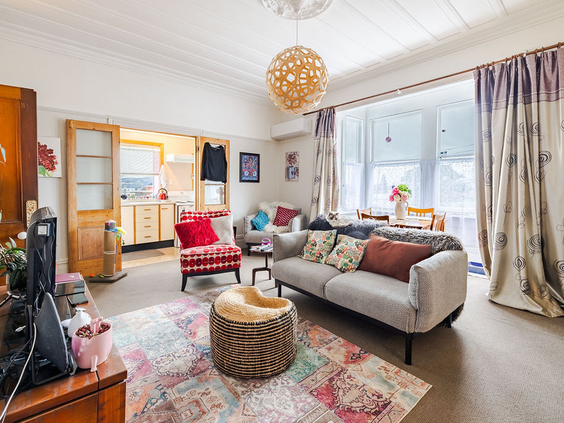 The upper-level apartment is occupied by a long-term tenant who has lived there for several years. The unit features two well-presented bedrooms and a semi-open plan kitchen and living area. The tenancy is fixed until 21 January 2027 at $400 per week.