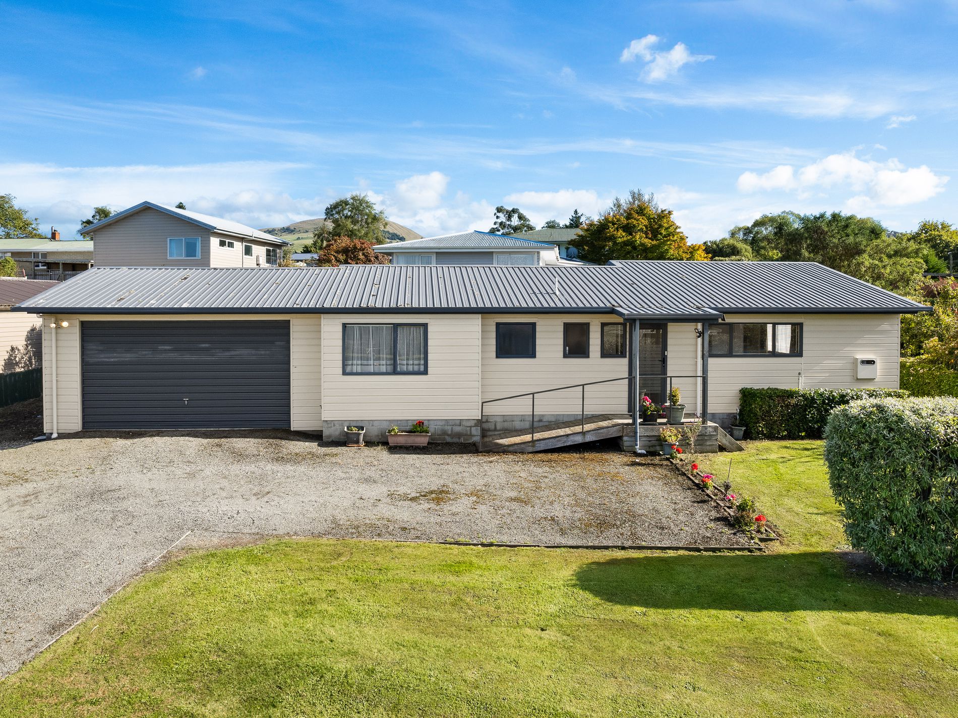 This 110m², three bedroom, low maintenance and versatile Coloursteel home features a heat pump and a modern design (circa 2000-2009). It sits on an easy care 500m² section in wonderful Waikouaiti.