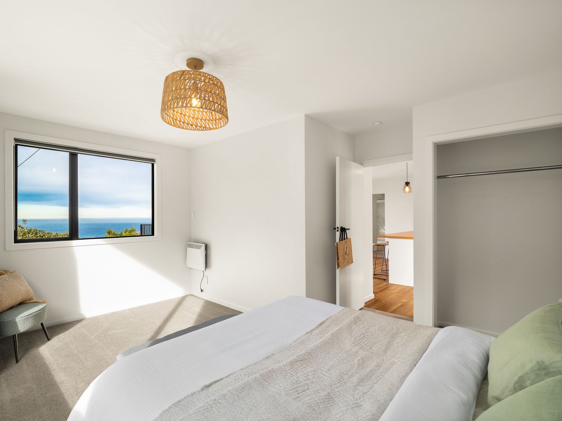 The home itself has been thoughtfully updated throughout, offering three bedrooms, a modern bathroom, and a warm, inviting living space that immediately feels like home. The main living area is a real standout, with large windows perfectly framing the ocean outlook and filling the space with natural light.